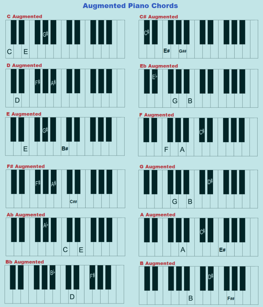 Here is a reference of Augmented Triads on all 12 Keys:
