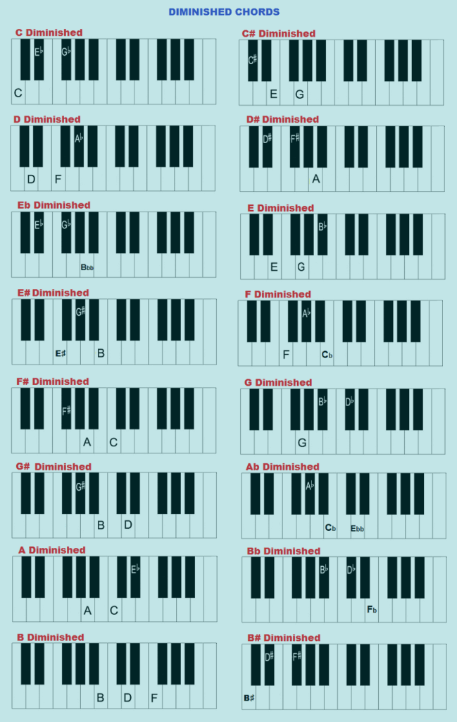 Here is a reference of Diminished Triads on all 12 Keys: